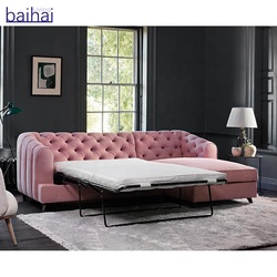 Sofá cama de tela Chesterfield en forma de L de terciopelo de diseño de lujo